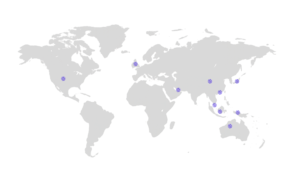 Singapore • Malaysia • Indonesia • Philippines • Hong Kong • China • Australia • Japan • United Kingdom • United States • Dubai